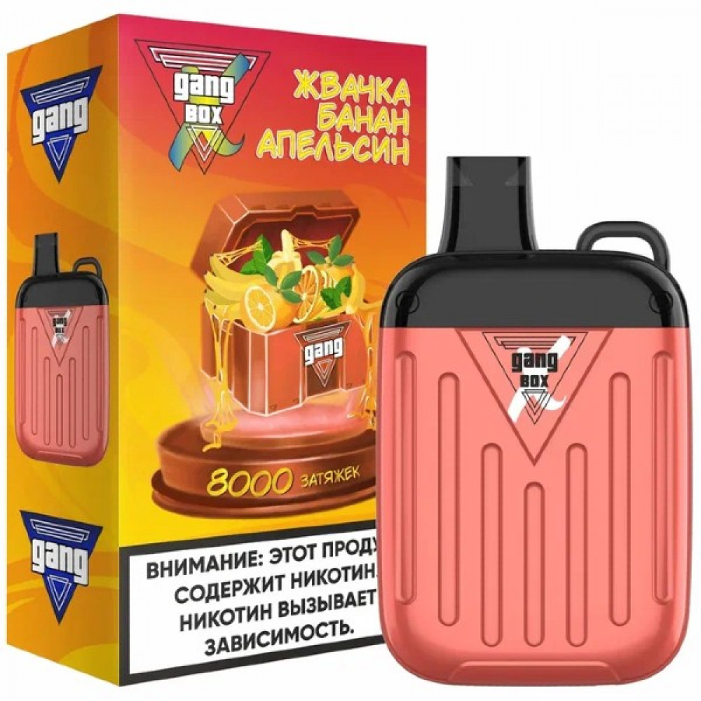 GANG видыX BOX 8000 GANG вкусыЖвачка Банан Апельсин GANG количество в пачке1 шт