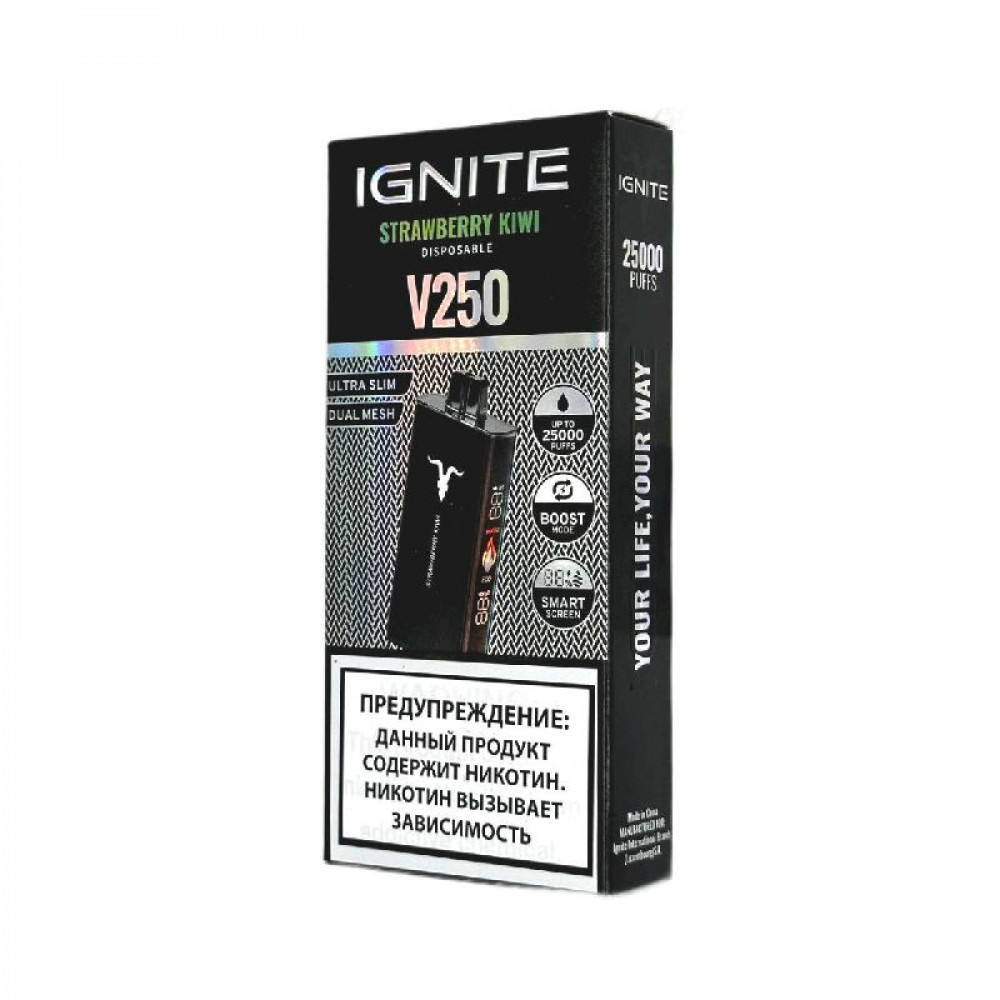 Электронная сигарета Ignite V250 Black 25000 - Strawberry Kiwi (Клубника киви) - купить в Кыштыме